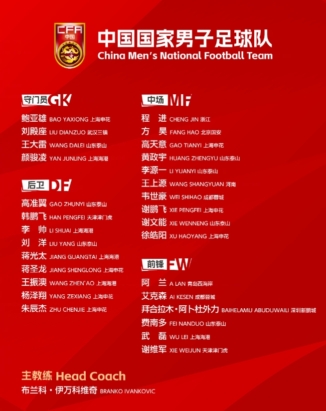 六名新人入选国足集训,